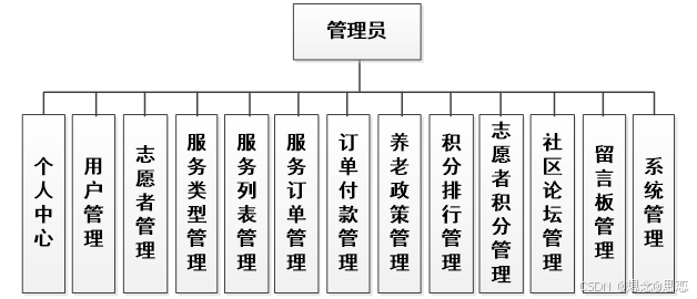 设计的管理员主要是提供的一些基础信息服务。设计的管理员功能结构图如下图所示: