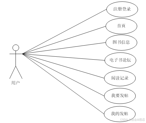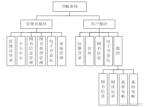 本基于微信小程序的书橱系统满足了不同用户的功能需求,包括用户以及管理员,下面对这不同用户的功能需求进行简介。