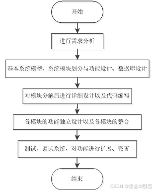 在开发本基于微信小程序的书橱系统时,首先进行需求分析,进而对系统进行总体的设计规划,设计系统功能模块,数据库的选择等,本系统的开发流程如图4-1所示。