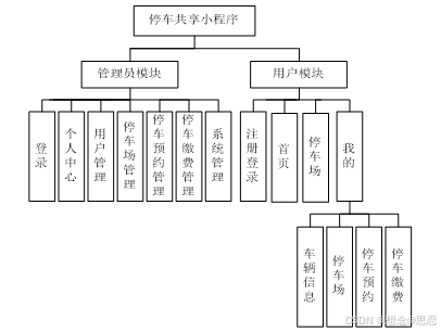 本基于语音识别的停车共享小程序主要分管理员和用户两大功能模块,下面将详细介绍管理员和用户分别实现的功能。