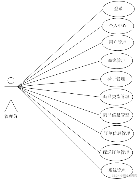 管理员可进行后台进行管理,包含个人中心、用户管理、商家管理、骑手管理、商品类型管理、商品信息管理、订单信息管理、配送订单管理以及系统管理。