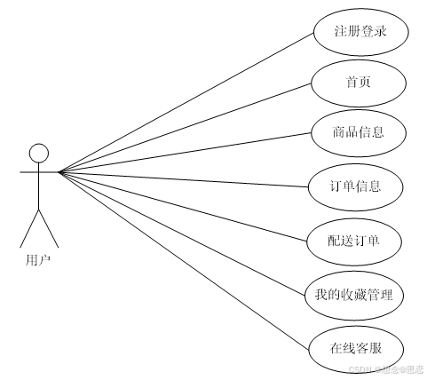 没有账号的用户可进行注册操作,注册登录后主要功能模块包括首页、商品信息以及我的(商品信息、订单信息、配送订单、我的收藏管理、在线客服)。