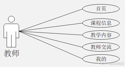 教师客户端;首页、课程信息、教学内容、教师交流、我的等详细的了解及统计分析。根据系统功能需求建立的模块关系图如下图: