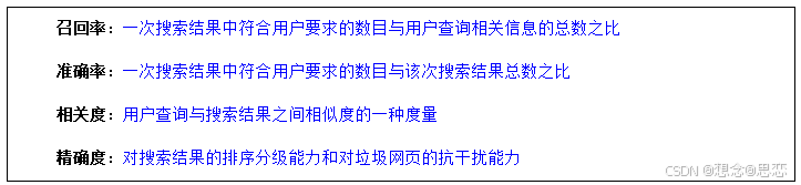 搜索引擎的主要指标有响应时间、召回率、准确率、相关度等。这些指标决定了搜索引擎的技术指标。搜索引擎的技术指标决定了搜索引擎的评价指标。好的搜索引擎应该是具有较快的反应速度和高召回率、准确率的,当然这些都需要搜索引擎技术指标来保障。