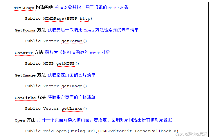 Bot包中的HTMLPage类用来从指定URL中读取数据并检索出有用的信息。下面给出该类几种重要的方法。