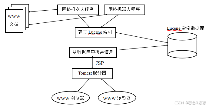 以上对基于因特网的搜索引擎结构和性能指标进行了分析,本人在这些研究的基础上利用JavaTM技术和一些Open Source工具实现了一个简单的搜索引擎——新闻搜索引擎。在接下来的几章里将会就本人的设计进行详细的分析。