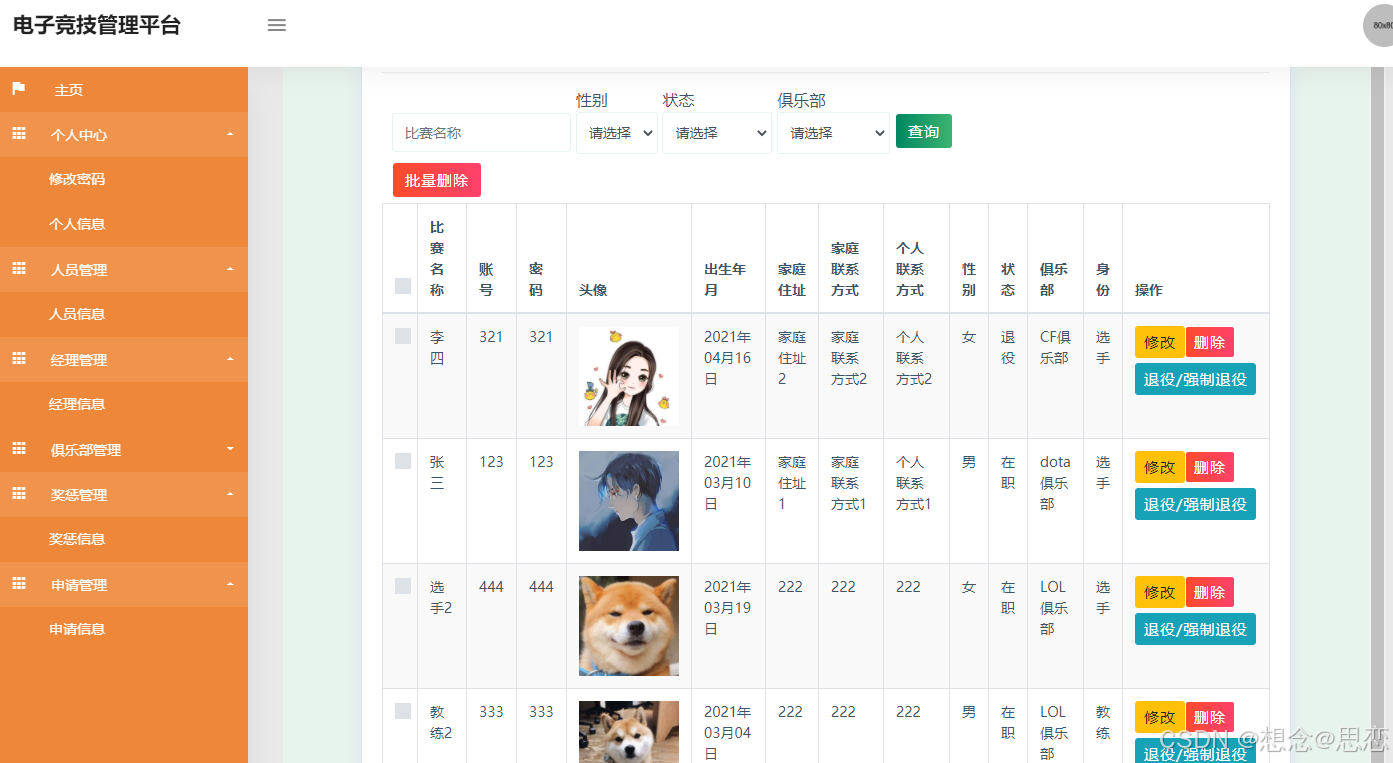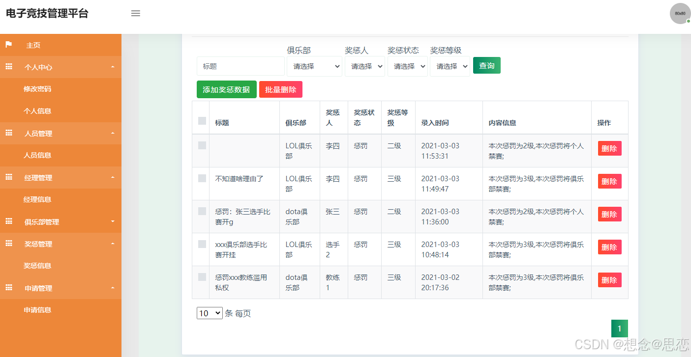 对俱乐部的处罚或转会申请进行同意,还可以进行删除操作,还可以对俱乐部、申请人进行条件筛选