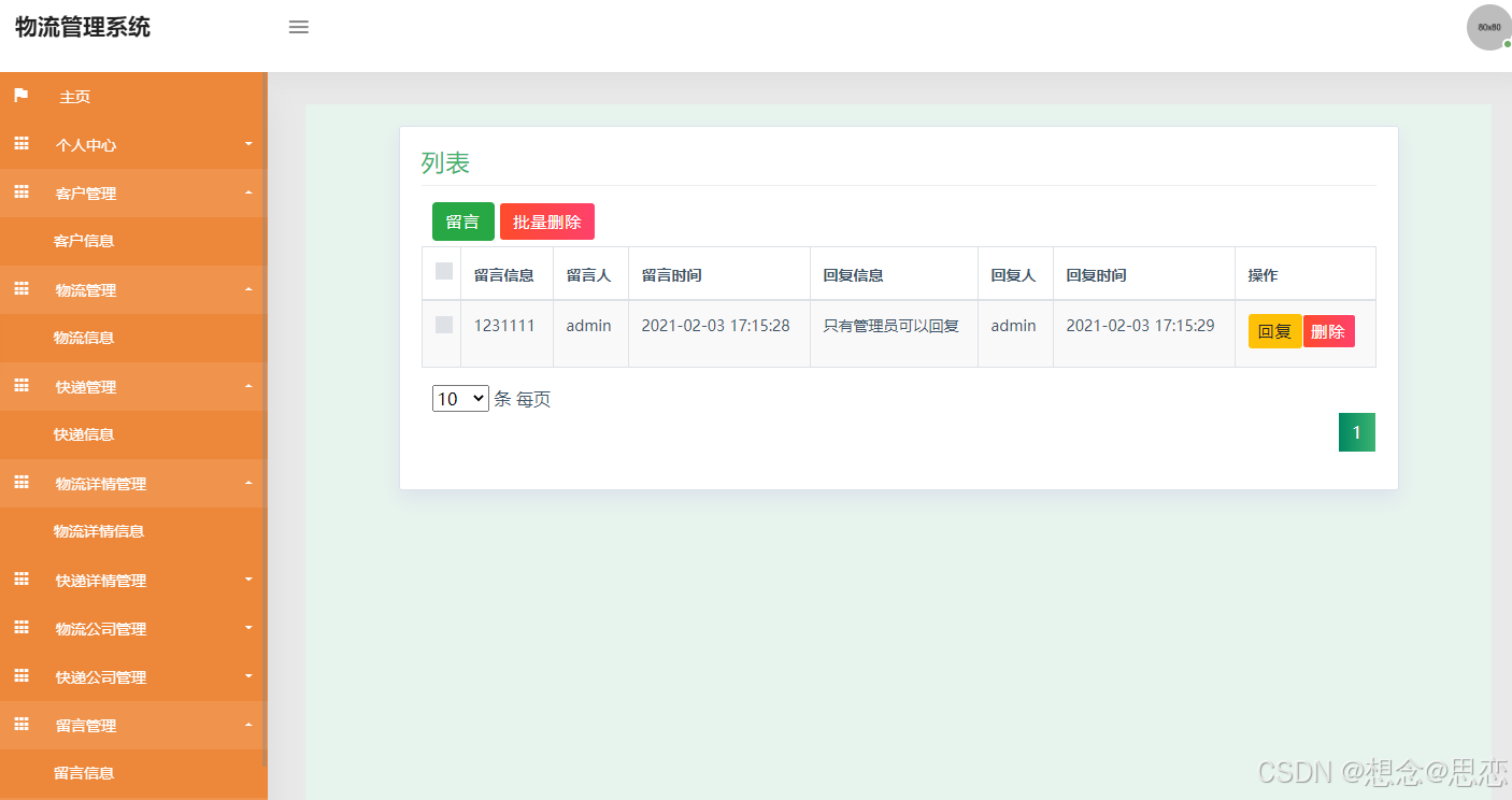 如图5.1显示的就是人员信息管理页面,此页面提供给管理员的功能有:人员信息的查询管理,可以删除人员信息、修改人员信息、新增人员信息,还进行了对人员名称的模糊查询的条件。