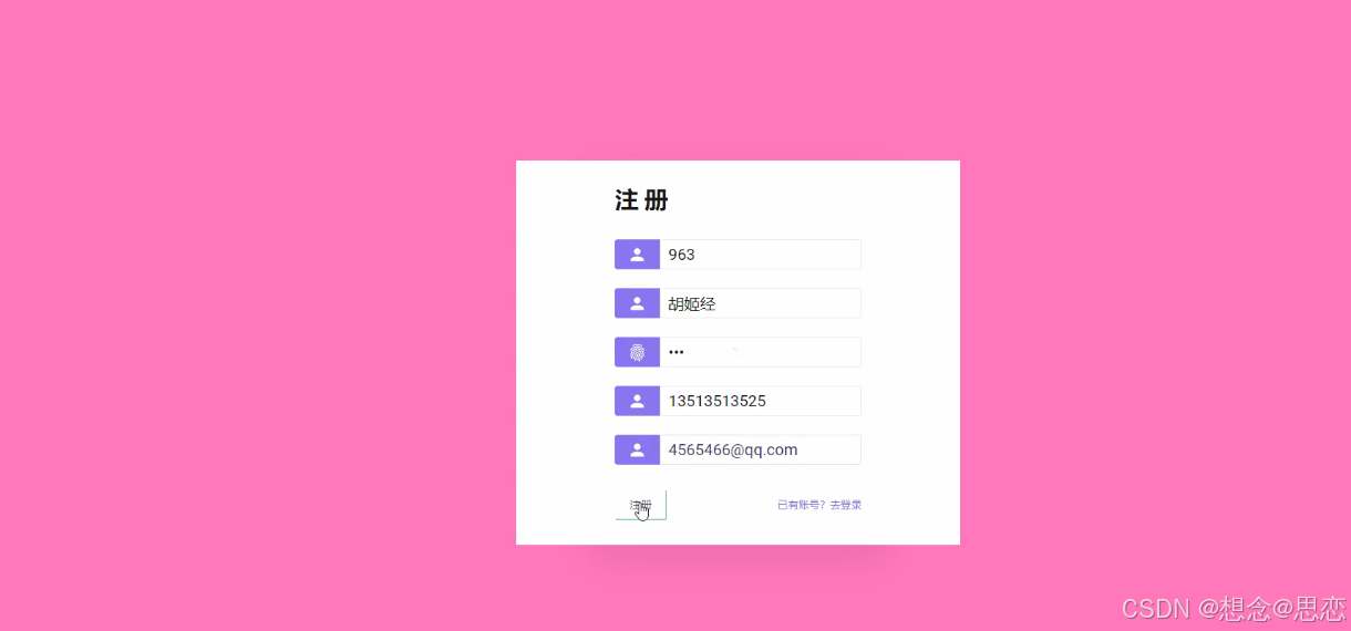 登录、注册,通过注册填写用户账号、用户姓名、密码、联系电话、电子邮箱等信息进行注册操作,如图5-18所示。