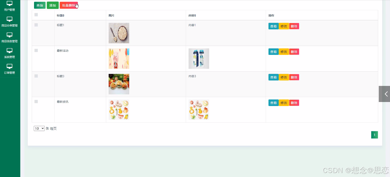新闻资讯:管理员通过列表可以获取标题、图片、内容等信息,进行修改或删除操作,如图5-13所示。
