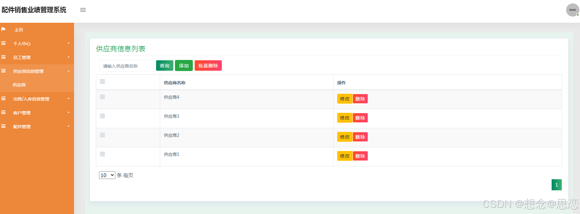 实现管理员权限的供应商管理功能,其运行效果见下图。管理员具有管理供应商的权限,可以修改,添加,查询,删除供应商。