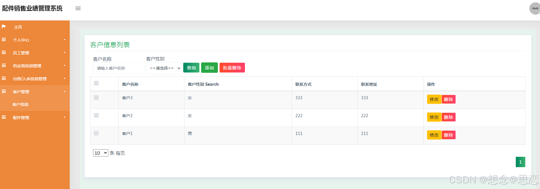 实现管理员权限的客户管理功能,其运行效果见下图。管理客户需要管理员添加客户,批量删除客户,查询指定客户,修改客户。