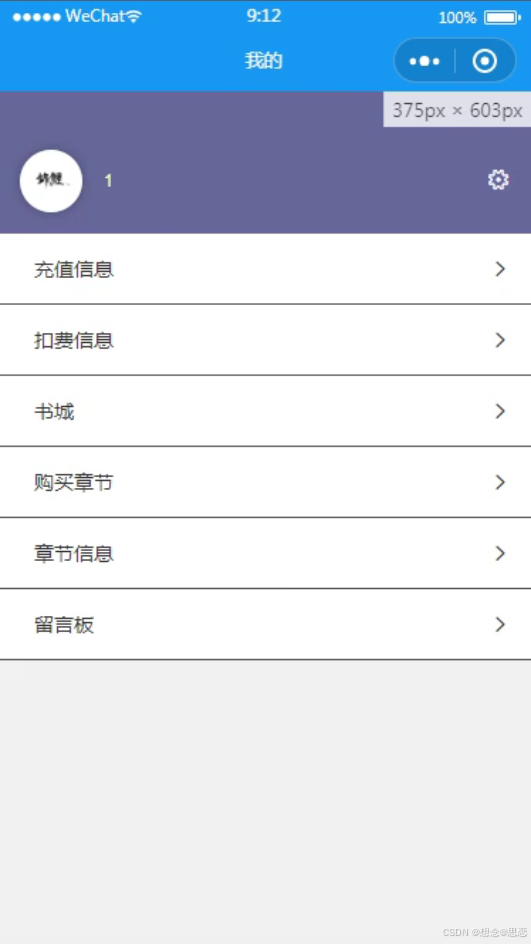 我的,在我的页面可以查看充值信息、扣费信息、书城、购买章节、章节信息、留言板等详细信息,如图5-5所示。