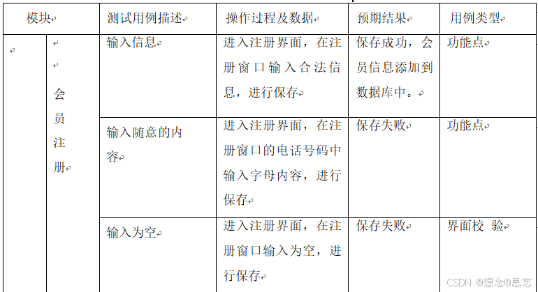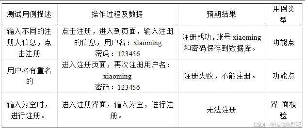 表6.1 用户注册测试用例