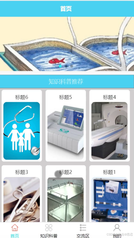 小程序首页会显示知识科普,交流区还有其他信息,通过下滑就可以获取到。界面如下图所示: