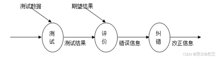 任务:消除软件故障,保证程序的可靠运行。测试与纠错的关系,可以用图6-1的数据流图来说明。图中表明,每一次测试都要准备好若干必要的测试数据,与被测试程序一道送入计算机执行。通常把一次程序执行需要的测试数据,称为一个“测试用例(Test Case)。每一个测试用例产生一个相应的“测试结果”。如果它与“期望结果”不想符合,便说明程序中存在错误,需要用纠错来改正。