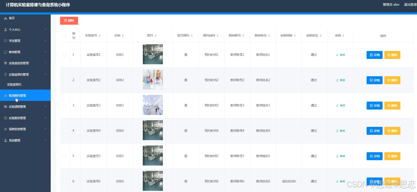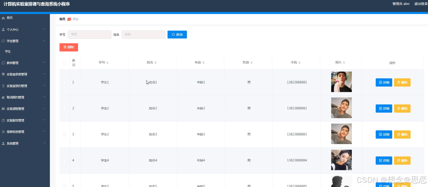 系统管理员可以对实验室信息进行增删查改操作。界面如下图所示: