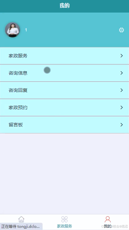 本微信小程序家政项目小程序管理员功能有个人中心,用户管理,家政人员管理,家政服务管理,咨询信息管理,咨询回复管理,家政预约管理,留言板管理,系统管理等。用户可以咨询并且预约家政人员。