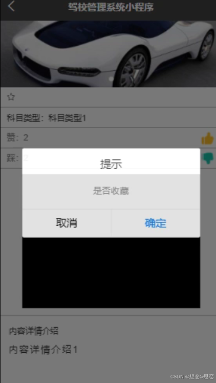 本基于小程序的驾校管理系统有管理员功能有个人中心,用户管理,科目二学习管理,科目类型管理,科目三学习管理,留言板管理,我的收藏管理,试卷管理,试题管理,系统管理,考试管理。用户可以参加学习可以考试。
