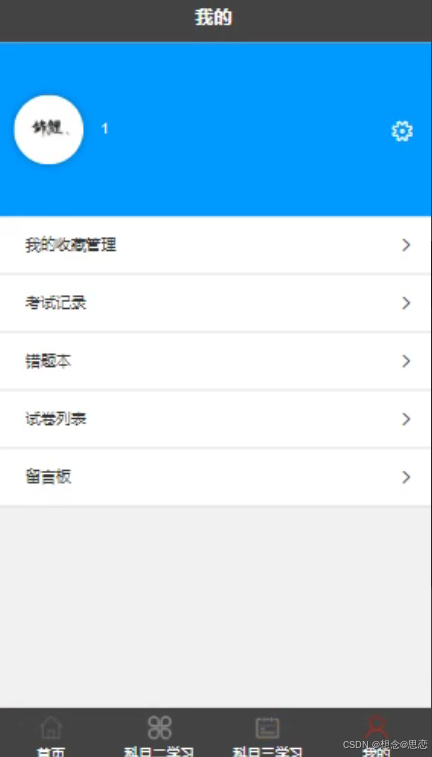 小程序用户可以对科目类型进行收藏。界面如下图所示: