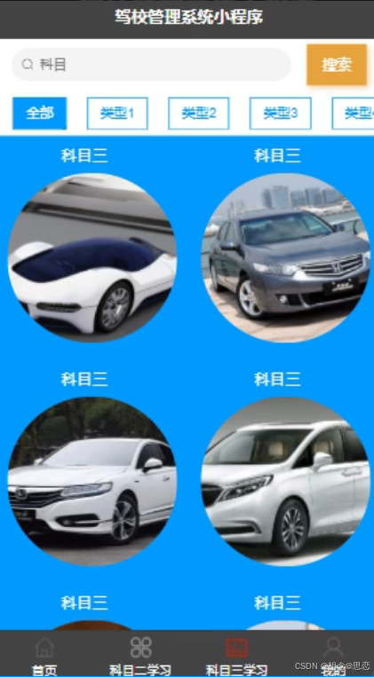 小程序用户可以在科目三学习。界面如下图所示: