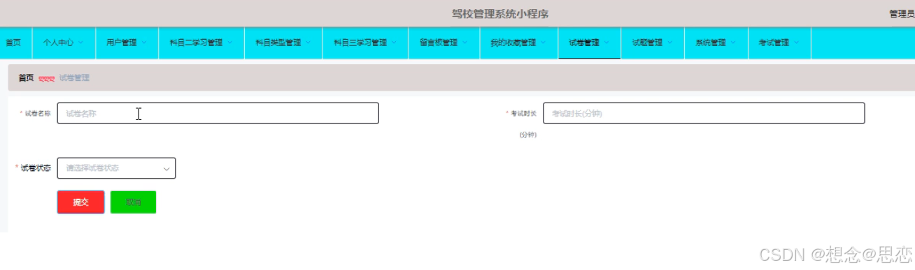 管理员可以对试卷信息进行添加修改删除操作。界面如下图所示: