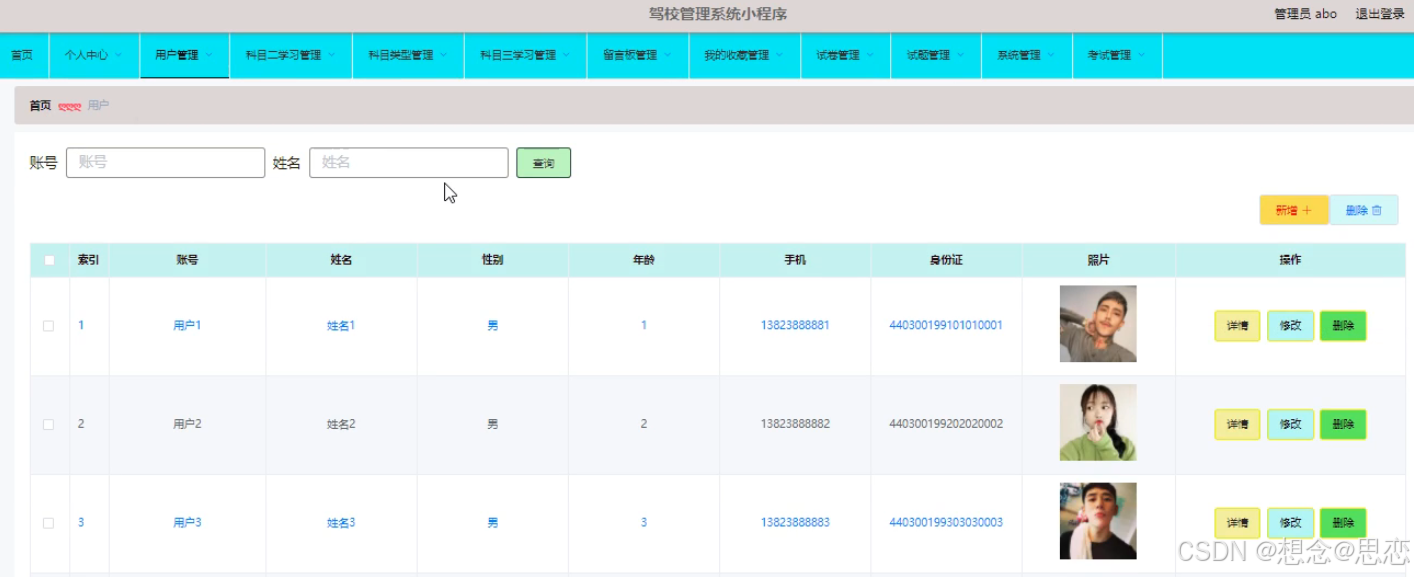 图5.1 用户信息管理界面