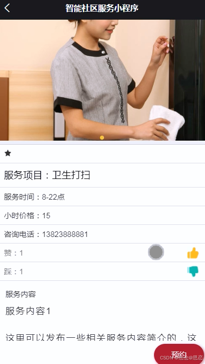 用户对家政服务信息进行预约。界面如下图所示: