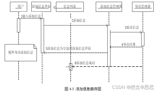 管理员登录后可进行添加信息操作,添加信息模块顺序图如图4-3所示。