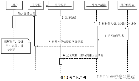 登录模块主要满足了管理员和用户的权限登录,登录模块顺序图如图4-2所示。