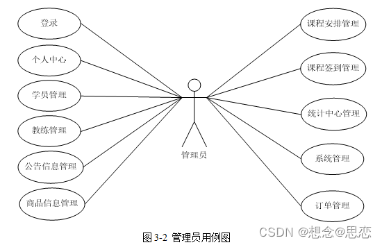 本基于Web的足球青训俱乐部管理后台系统主要满足3种类型用户的需求,这3种类型用户分别为学员、教练和管理员,他们分别实现的功能如下。