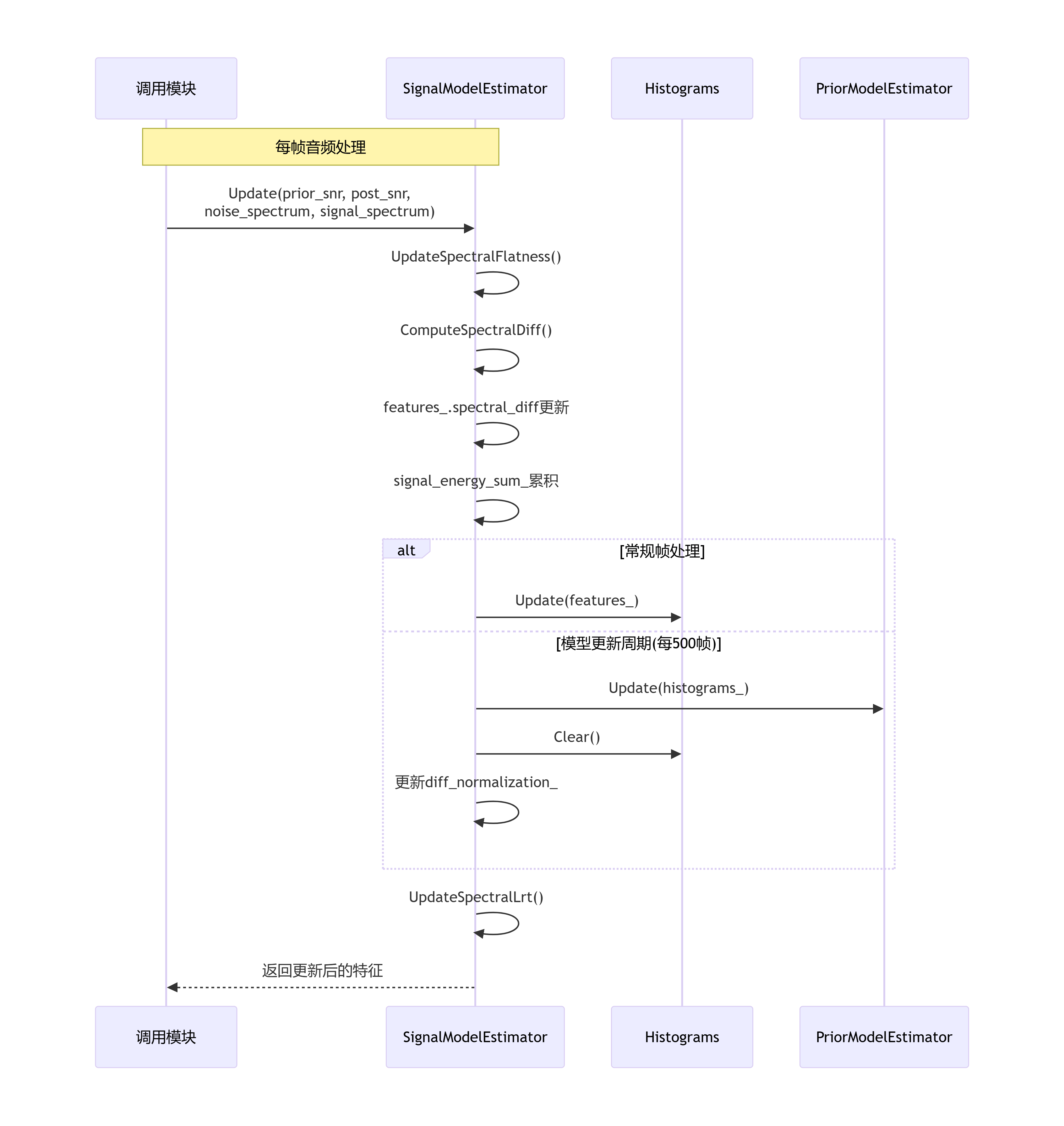SignalModelEstimator 是 WebRTC 噪声抑制模块中的关键组件,主要负责: