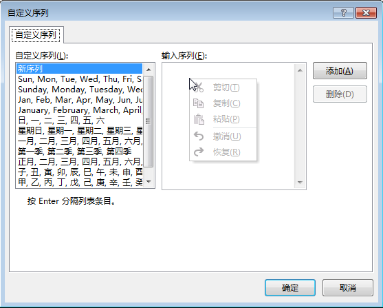 - 按照上面操作打开自定义序列对话框,在【输入序列】对话框中仍然无法粘贴