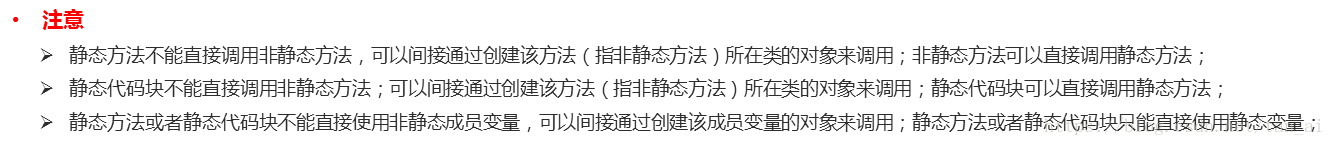 ▉static修饰的方法称为类方法(又称静态方法):此种方法被该类所有对象共享;JVM加载类时为其分配入口地址;可以由所在类创建对象或类名来调用,推荐用类名直接调用