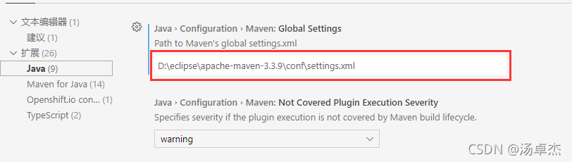(点击左下角螺丝按钮>>>设置settings)Ctrl+,>>>搜索maven>>>Java>>>填入setting.xml地址