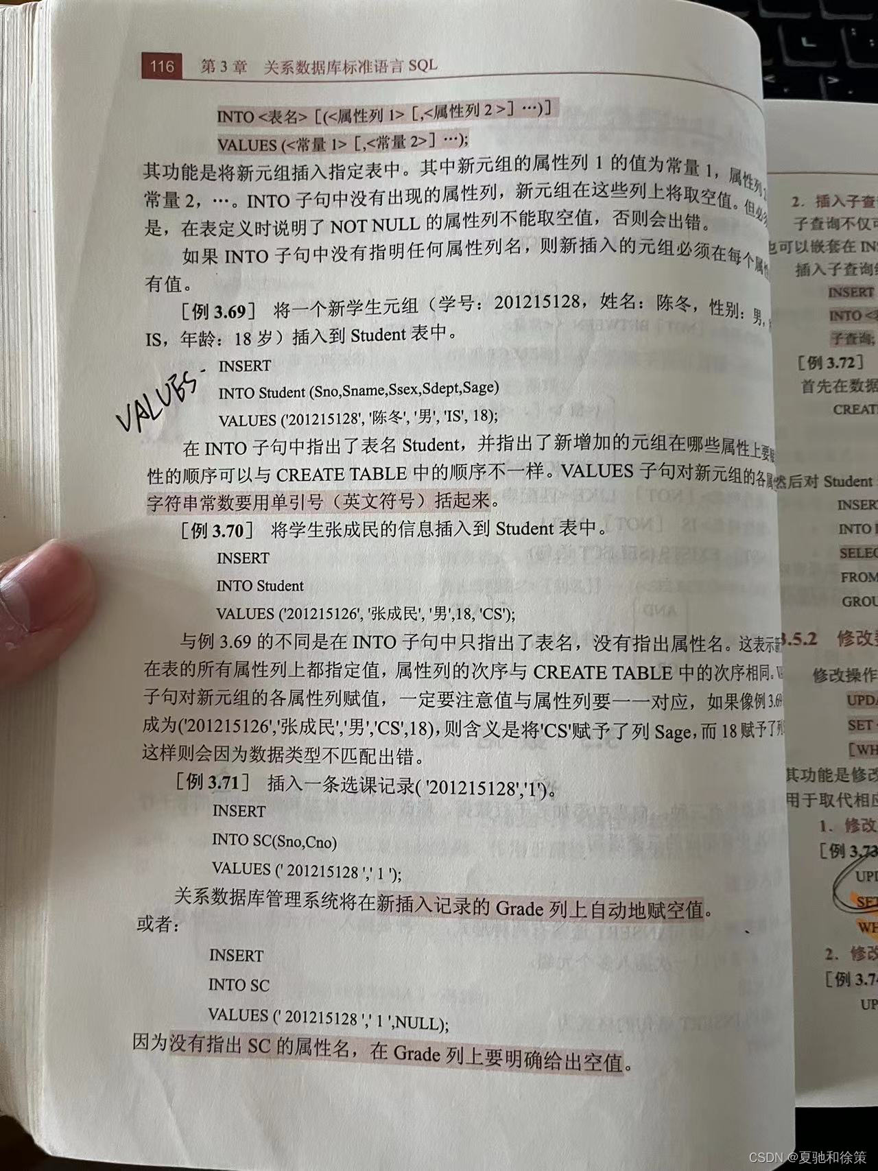 INSERT INTO SC(Sno, Cno) VALUES ('201215128', '1');