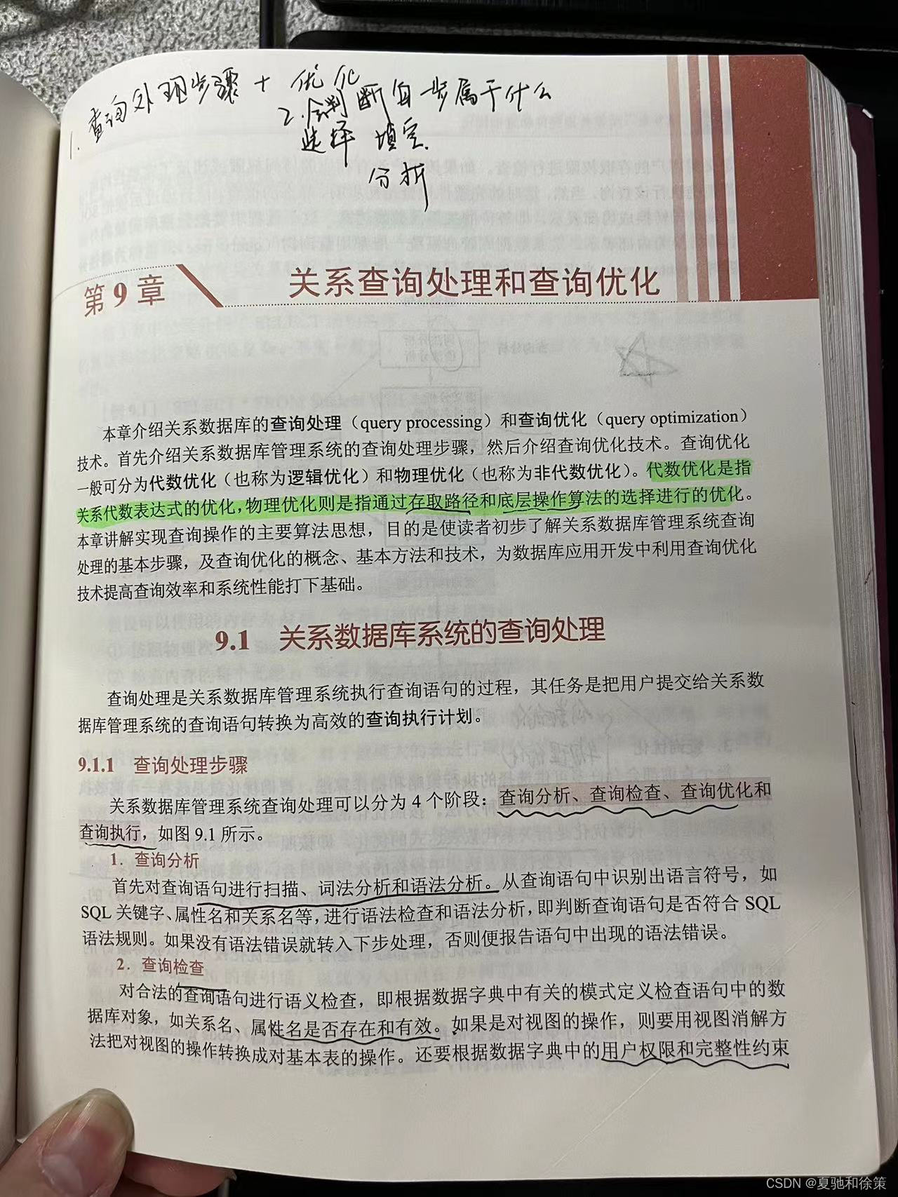- 优化分为代数优化(改变操作的次序和组合)和物理优化(选择存取路径和操作算法)。