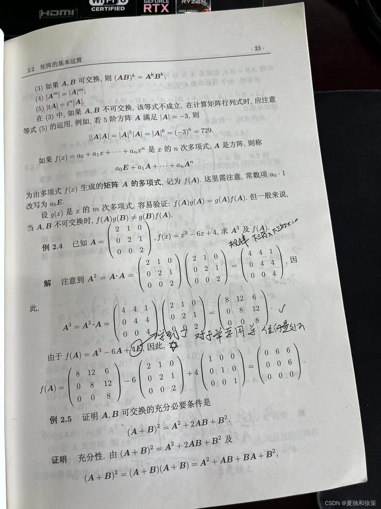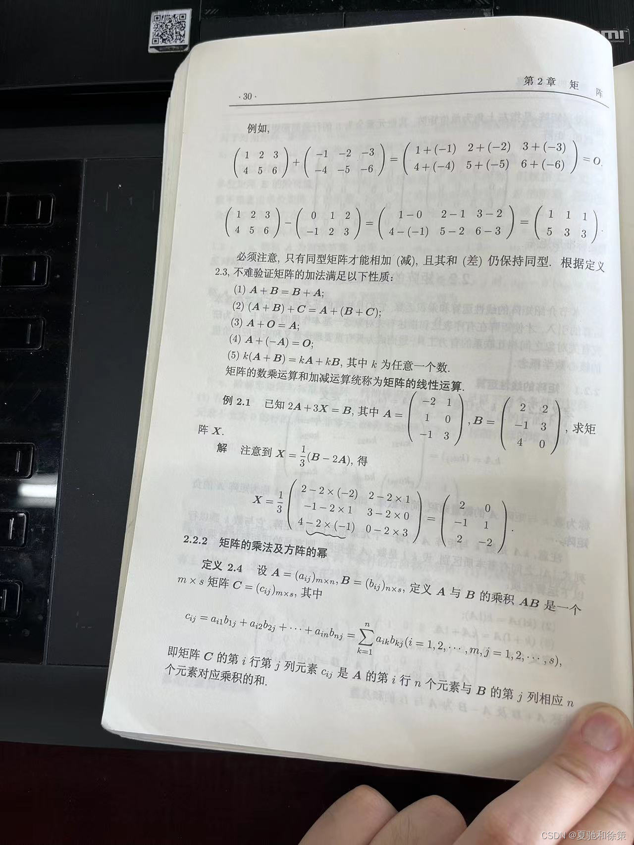 例 2.1 已知 2A+3X=B2A + 3X = B2A+3X=B,其中