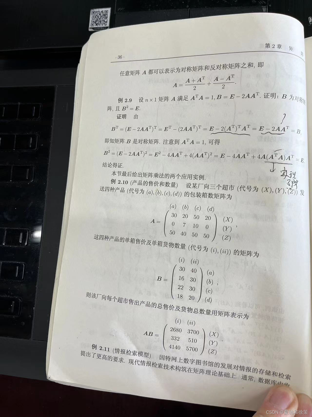 例如,矩阵 A=(123456)A = \begin{pmatrix} 1 & 2 & 3 \\ 4 & 5 & 6 \end{pmatrix}A=(142536) 的转置矩阵为 AT=(142536)A^T = \begin{pmatrix} 1 & 4 \\ 2 & 5 \\ 3 & 6 \end{pmatrix}AT=123456
