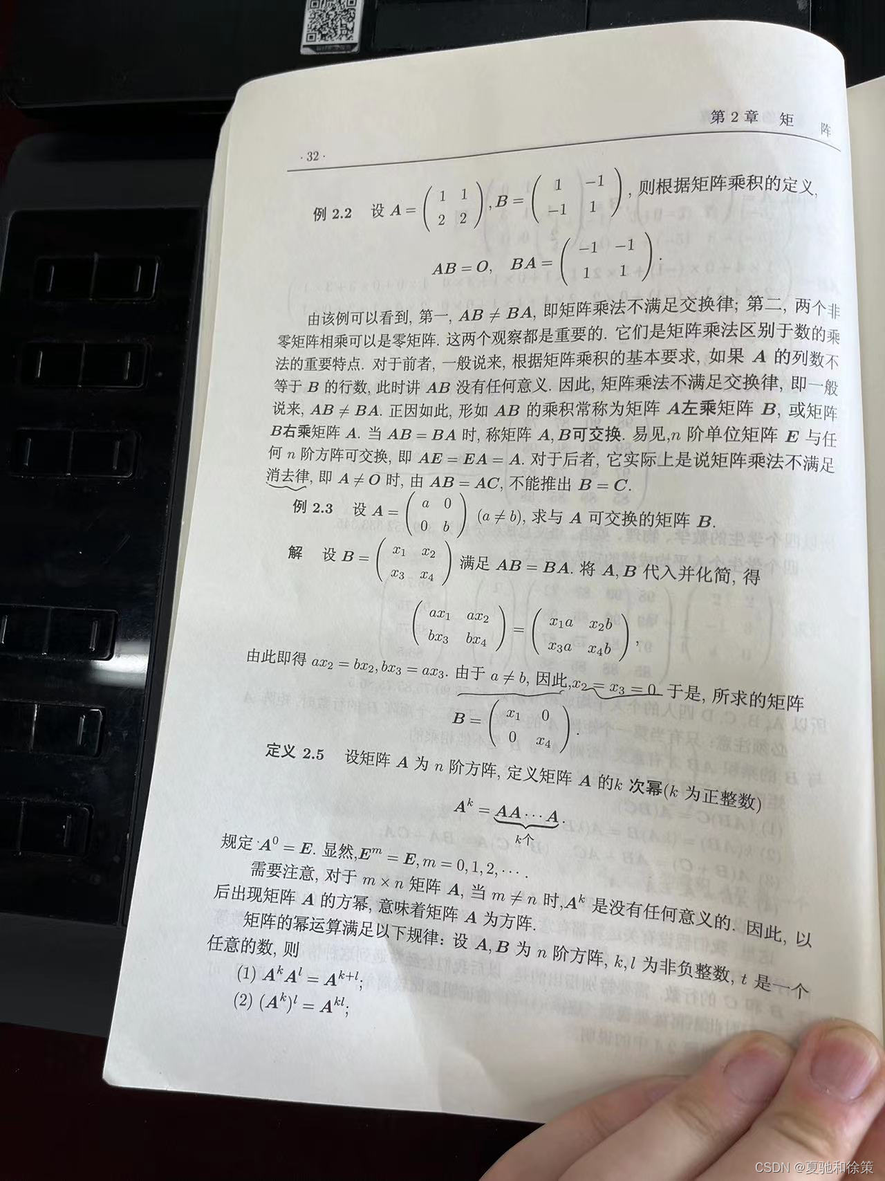 由此可见,矩阵乘法不满足交换律,即一般来说,AB≠BAAB \neq BAAB=BA。