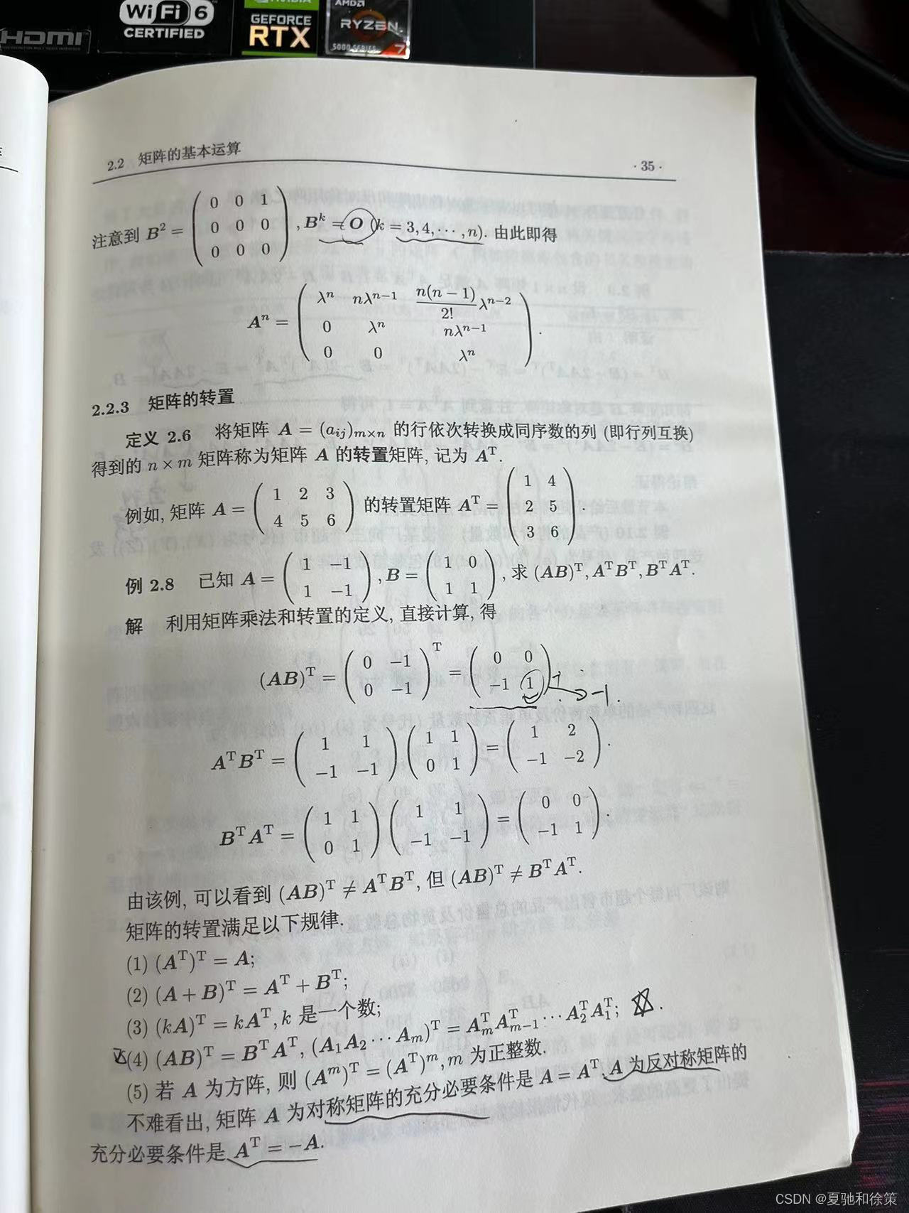 - (kA)T=kAT(kA)^T = kA^T(kA)T=kAT,其中 kkk 是一个数