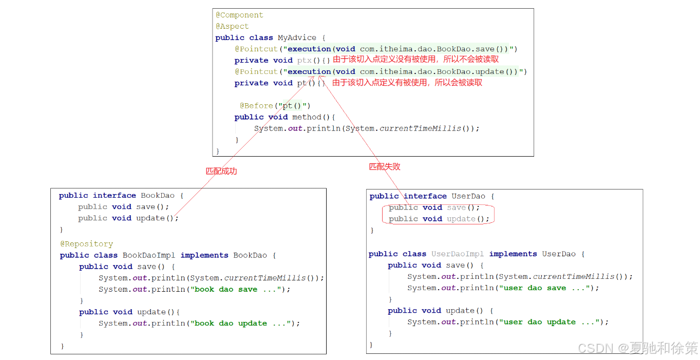 因为定义的切入点中,被修改成update1,所以BookDao中的update方法在执行的时候,就不会被增强,