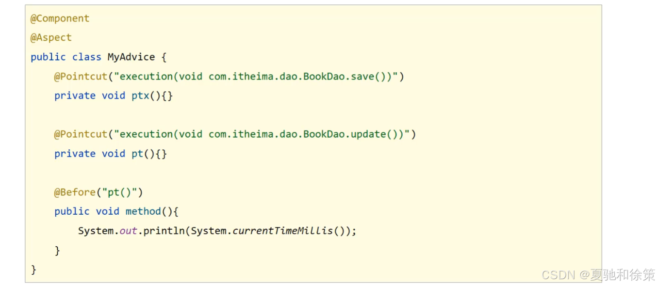 @Pointcut("execution(void com.itheima.dao.BookDao.update())")