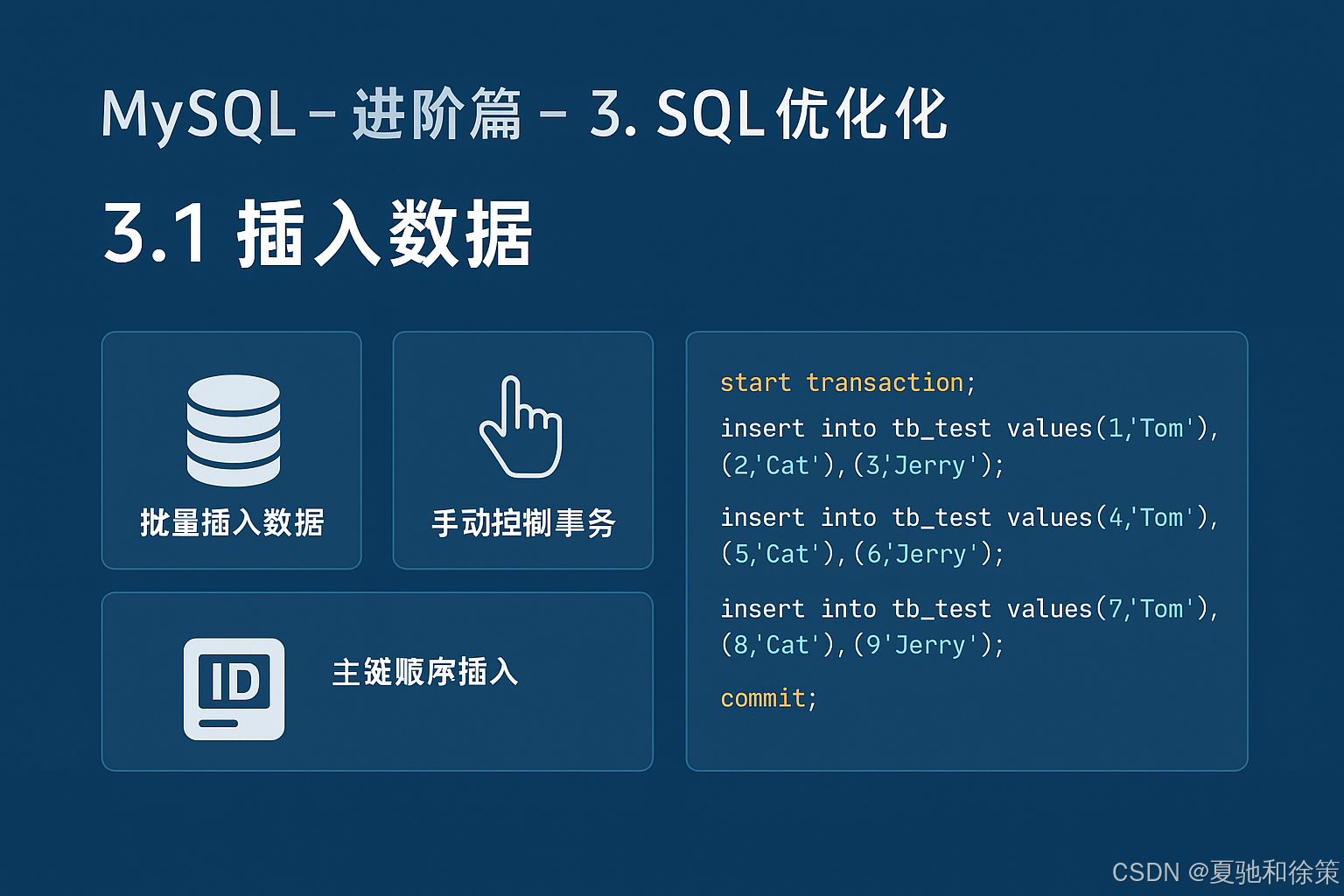 插入数据的性能优化,本质上围绕 减少额外开销、顺应存储结构 两个方面展开。