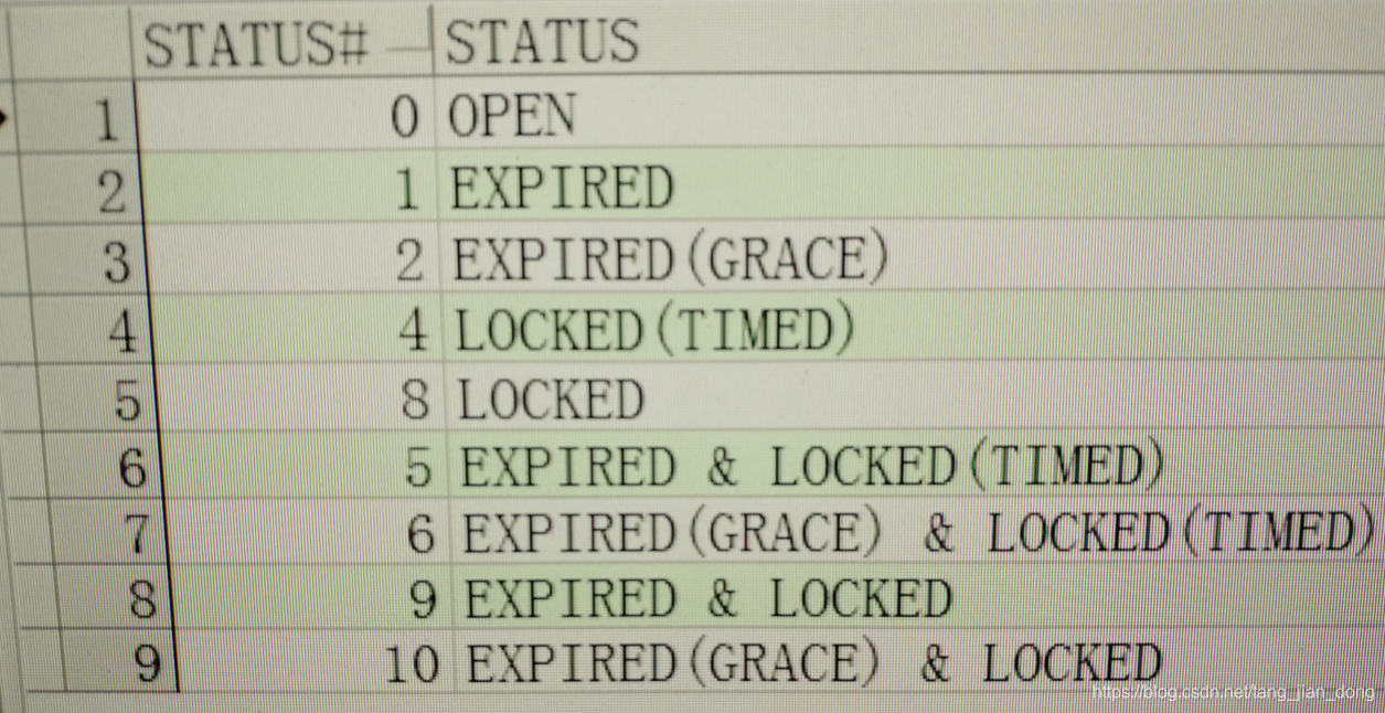 会看到一下图片: account_status 是 expired 或者 expired(grace) 这个状态是表示密码过期了;