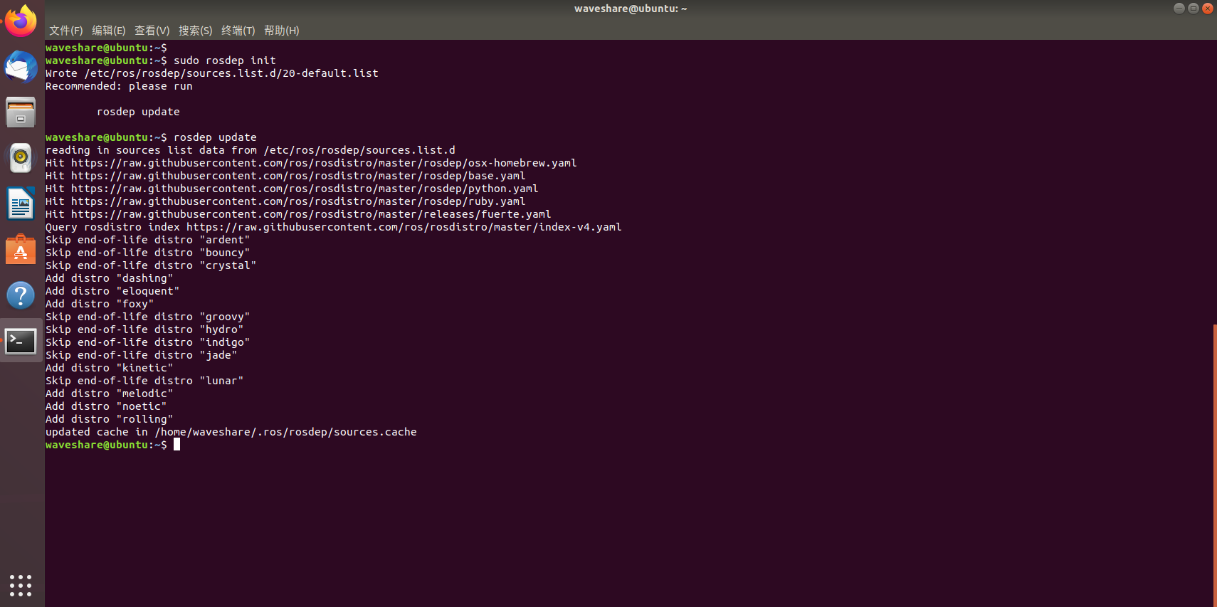 首先呢,需要先初始化 rosdep,rosdep 让你能够轻松地安装被想要编译的 源代码,或被某些 ROS 核心组件需要的系统依赖。 在终端依次输入下面指令。