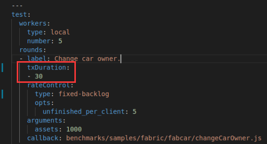 错误3—caliper-engine Error while performing "test" step: Error: Round 1 configuration validation error:"txDuration" attribute must be a numer