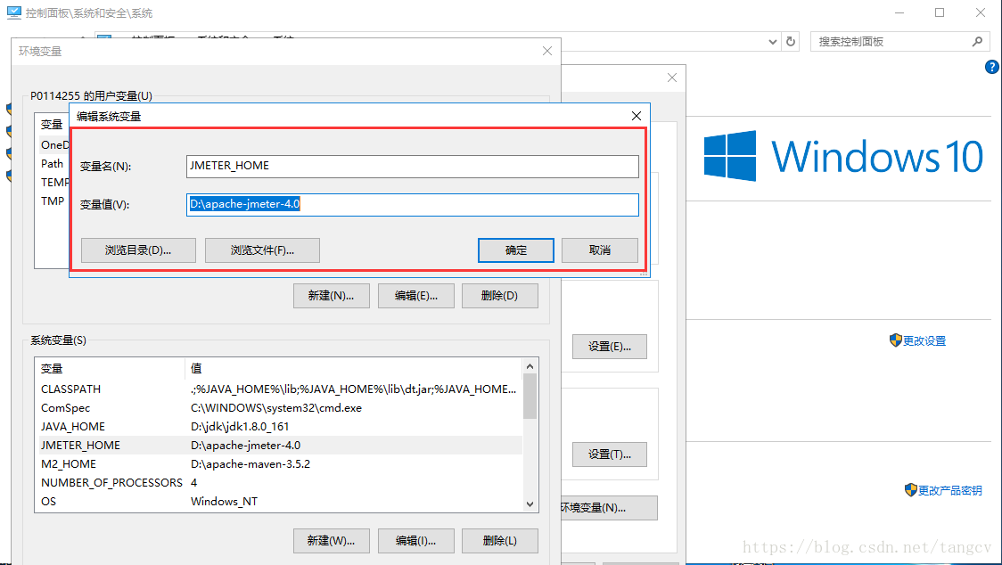 在用户变量中,新建变量名:”JMETER_HOME”,变量值为:D:\apache-jmeter-4.0