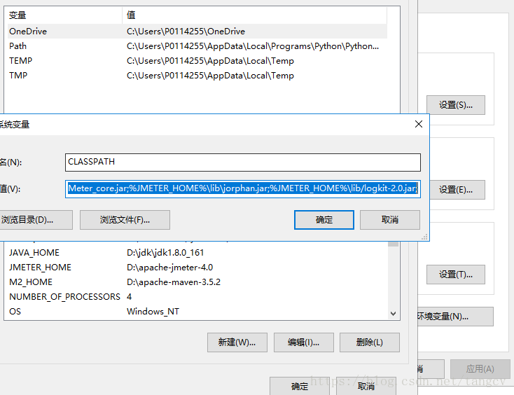 修改CLASSPATH,在后面添加;%JMETER_HOME%/lib/ext/ApacheJMeter_core.jar;%JMETER_HOME%/lib/jorphan.jar;%JMETER_HOME%/lib/logkit-2.0.jar