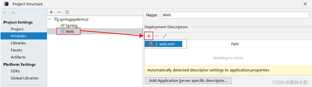 2、选择Modules-> + -> Web